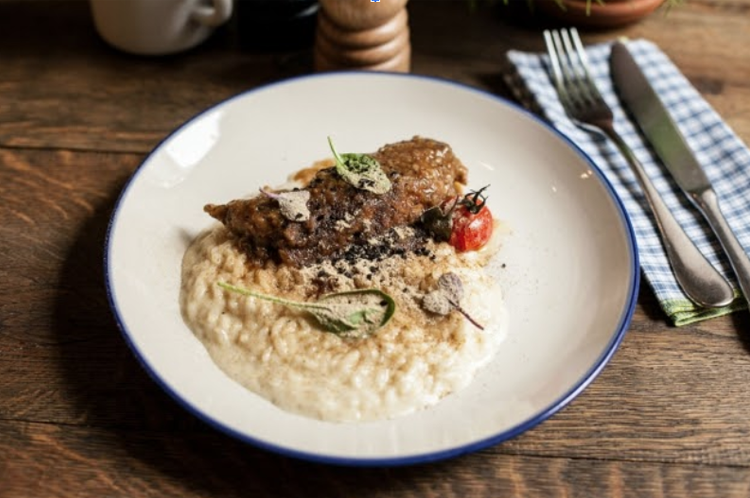 Томленая ножка кролика с грибным ризотто